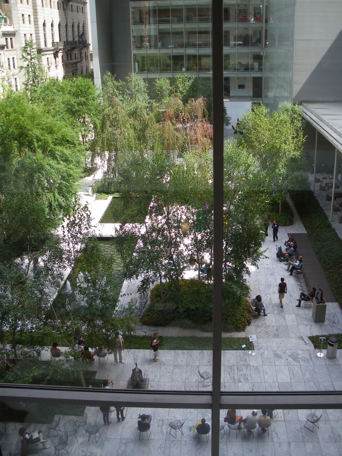ristorante situato a fianco del museo di arte moderna MOMA, con vista sul giardino del museo. cibo francese raffinato, gustoso e particolare. ambiente elegante con un buon servizio. arredamento essenziale e moderno.
