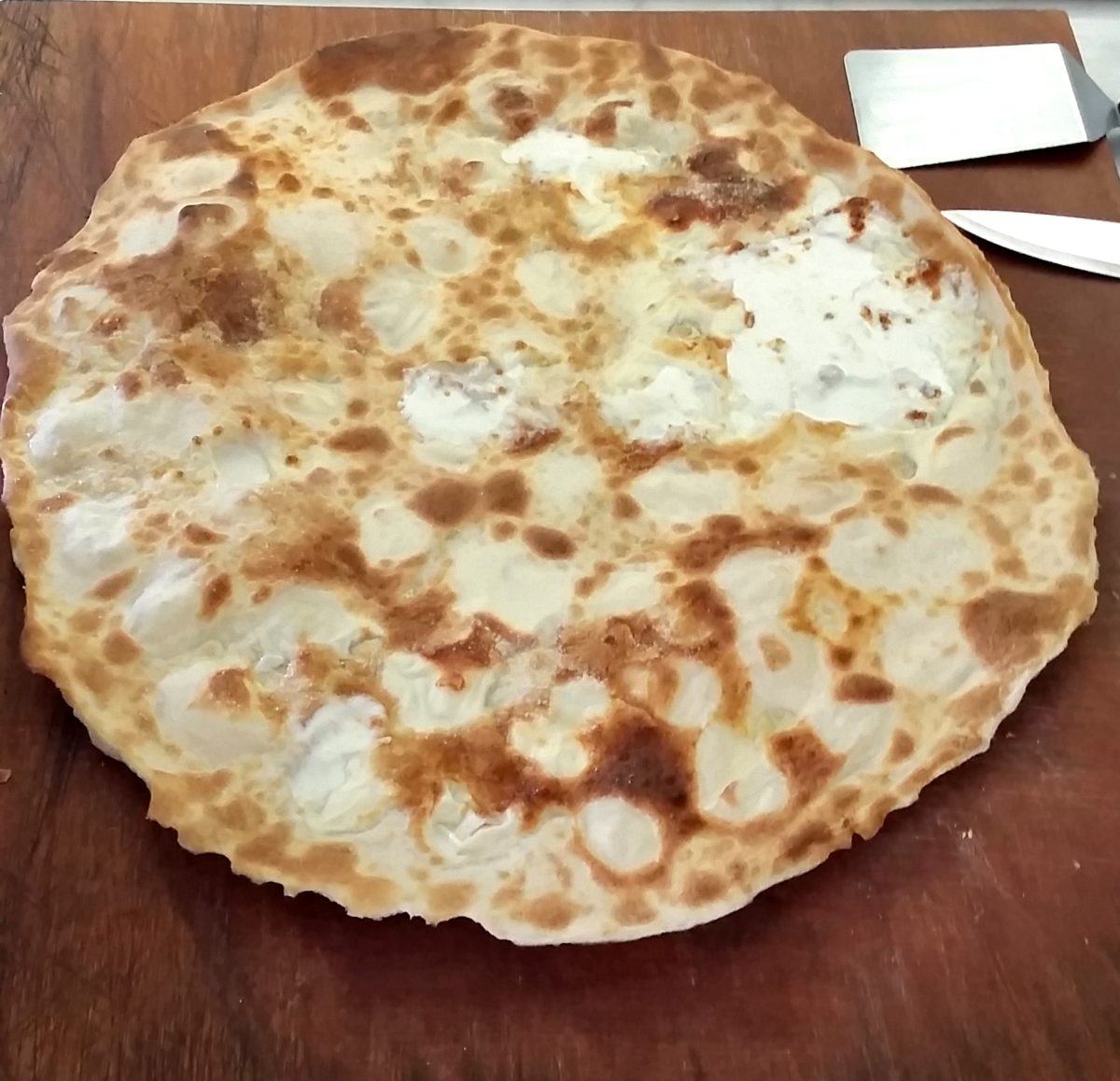 abbiamo ordinato una teglia grande di focaccia con lo stracchino.