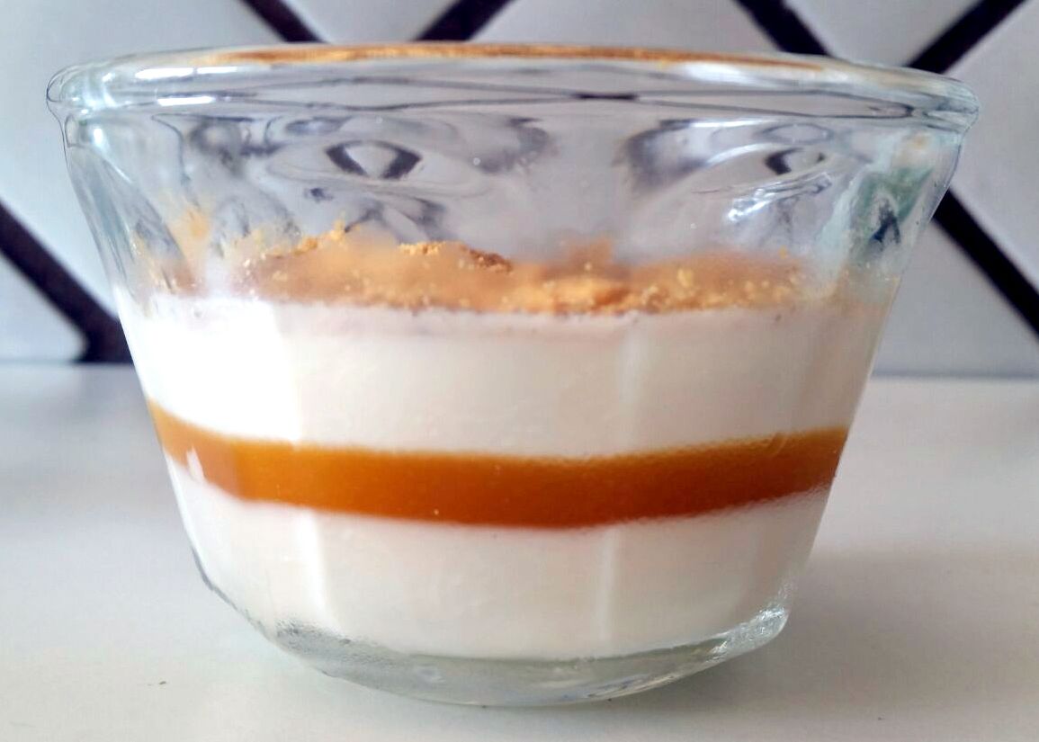 abbiamo finito in dolcezza con un cheese cake rovesciato con albicocche, presentato nel bicchiere.
