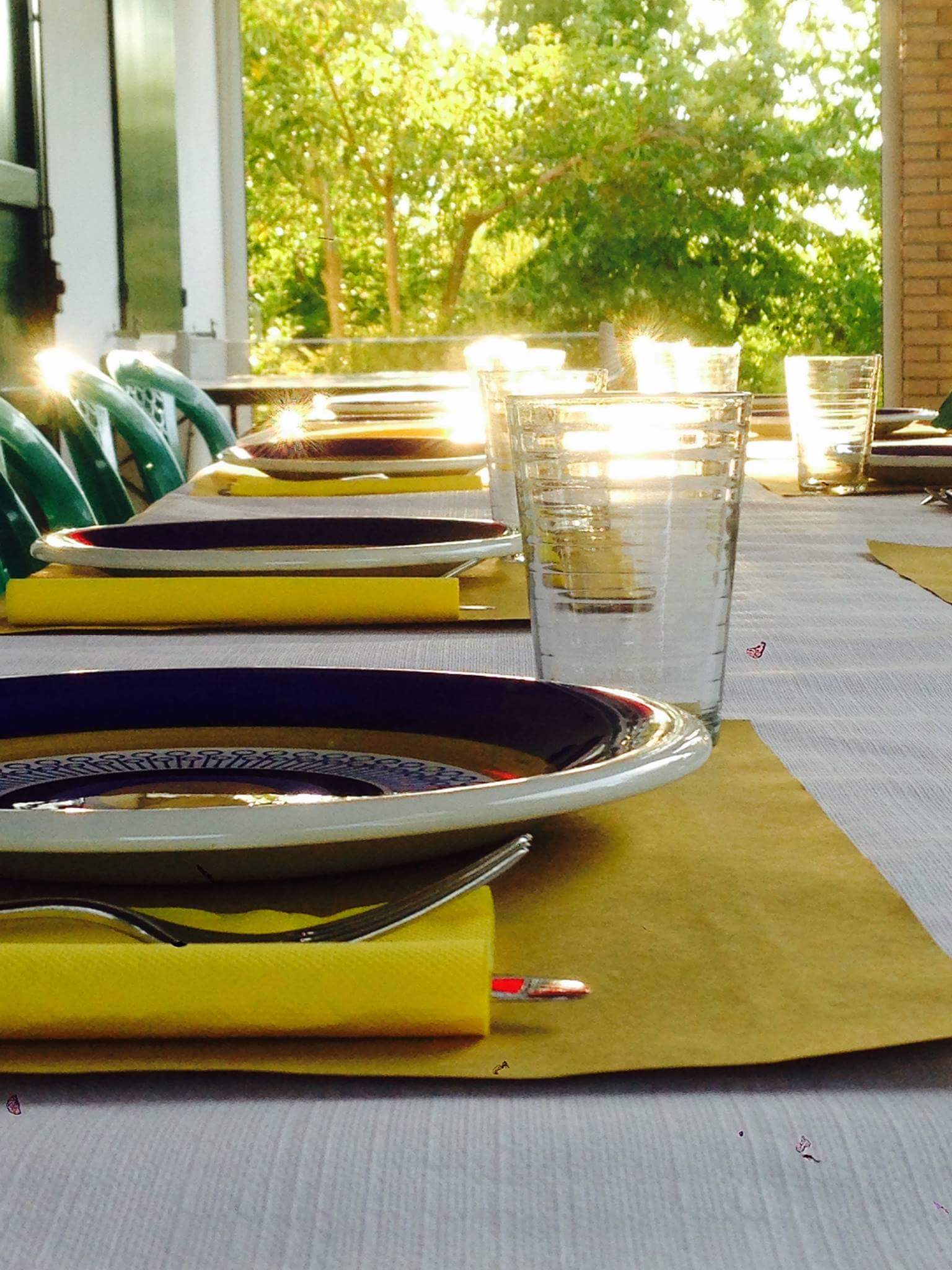 Luckily the owners of the villa were friends of mine, they helped me with the choice of the plates ( they were made of this beautiful and colourful porcelain) glasses and the table setting.