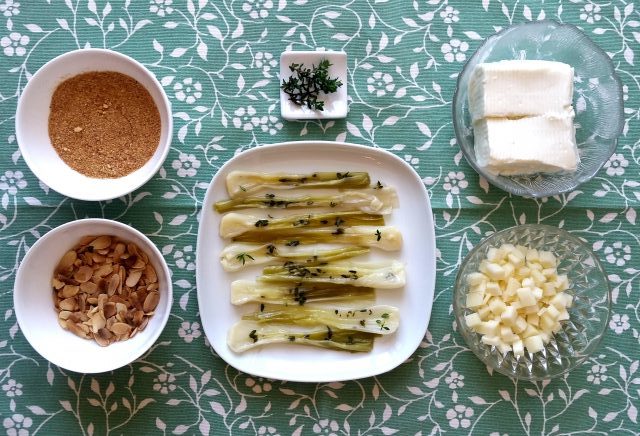 ricopri i cipollotti con la caciotta a dadini e lo stracchino a fiocchetti.