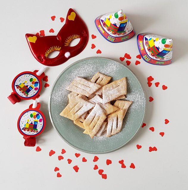 questi dolcetti sono famosi in tutta Italia e cambiano nome a seconda della regione, li potete trovare anche come chiacchere cenci sfrappole crastoli bugie meraviglias galani…