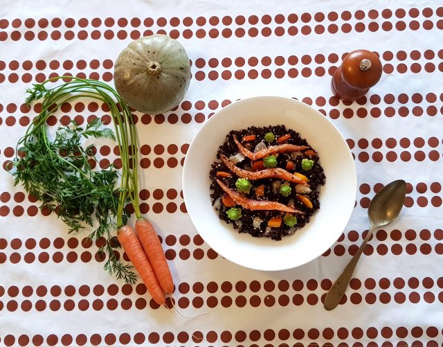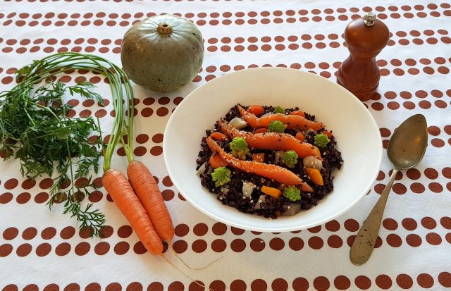 il riso venere si abbina bene a tanti ingredienti ed è squisito anche semplicemente condito con un filo d’olio.