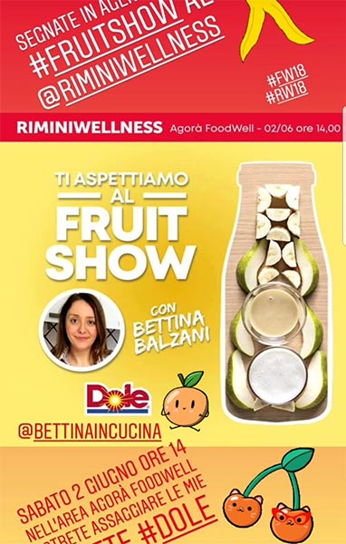 in particolare sono intervenuta quest’anno come testimonial per l’azienda Dole, con la quale collaboro da alcuni anni, per presentare uno showcooking con i loro deliziosi prodotti.