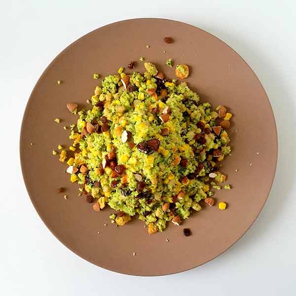 Couscous di cavolfiore con fagioli mais curcuma e zenzero