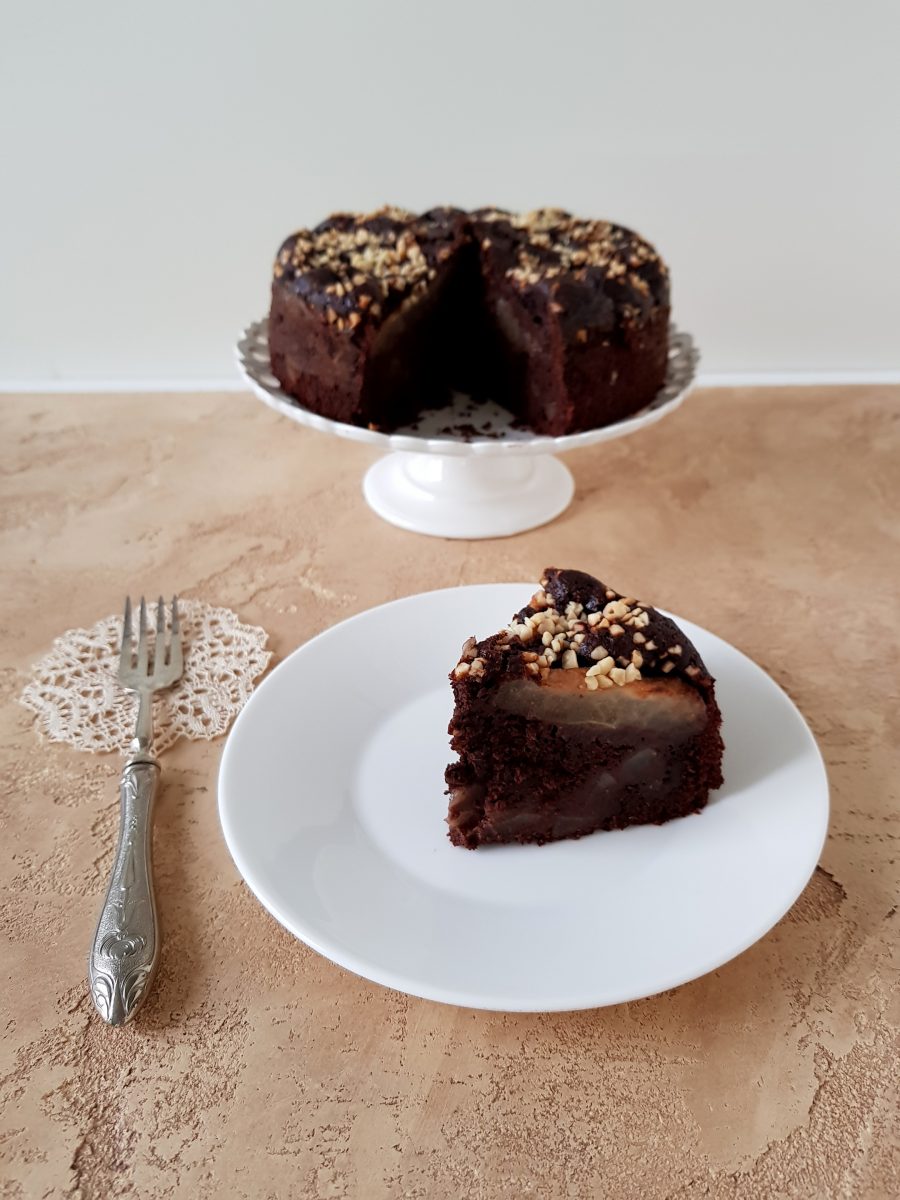 Torta al cioccolato fondente, pere, ricotta, vaniglia e mandorle