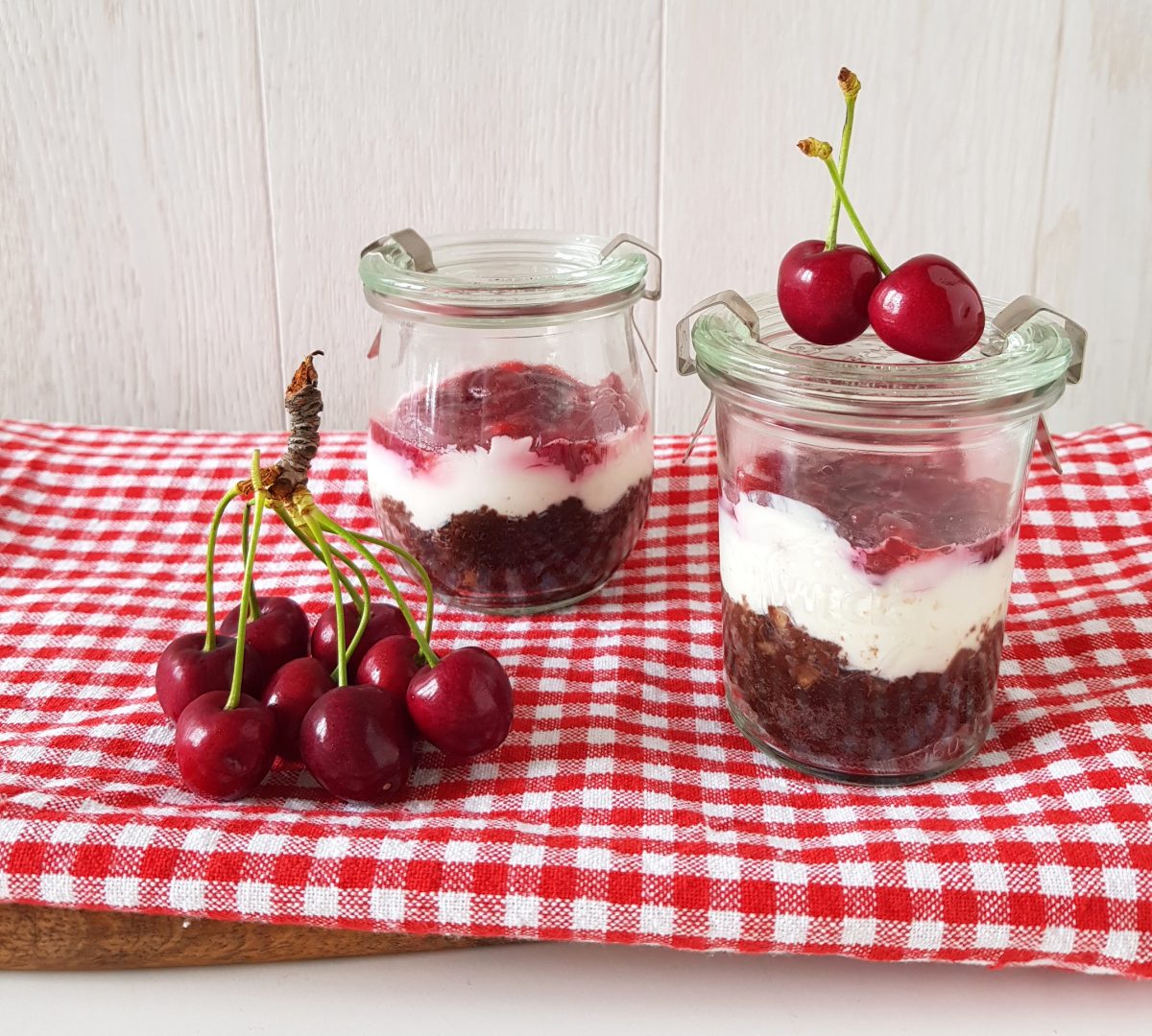 Un dessert facile invitante e leggero che ho creato sistemando tutti gli ingredienti a strati nei vasetti. Ho iniziato con la torta poi qualche cucchiaino di sciroppo di ciliegie, un bello strato di yogurt e per finire la composta veloce di ciliegie e vaniglia.