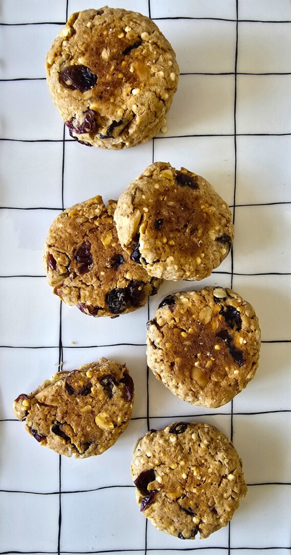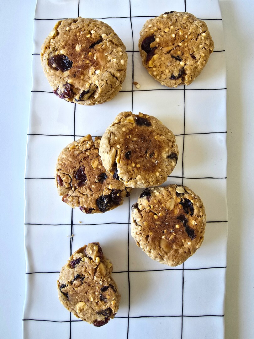 Questi biscotti all’avena sono la mia colazione preferita. Croccanti all’esterno e soffici all’interno con tante consistenze diverse dovute ai vari ingredienti.