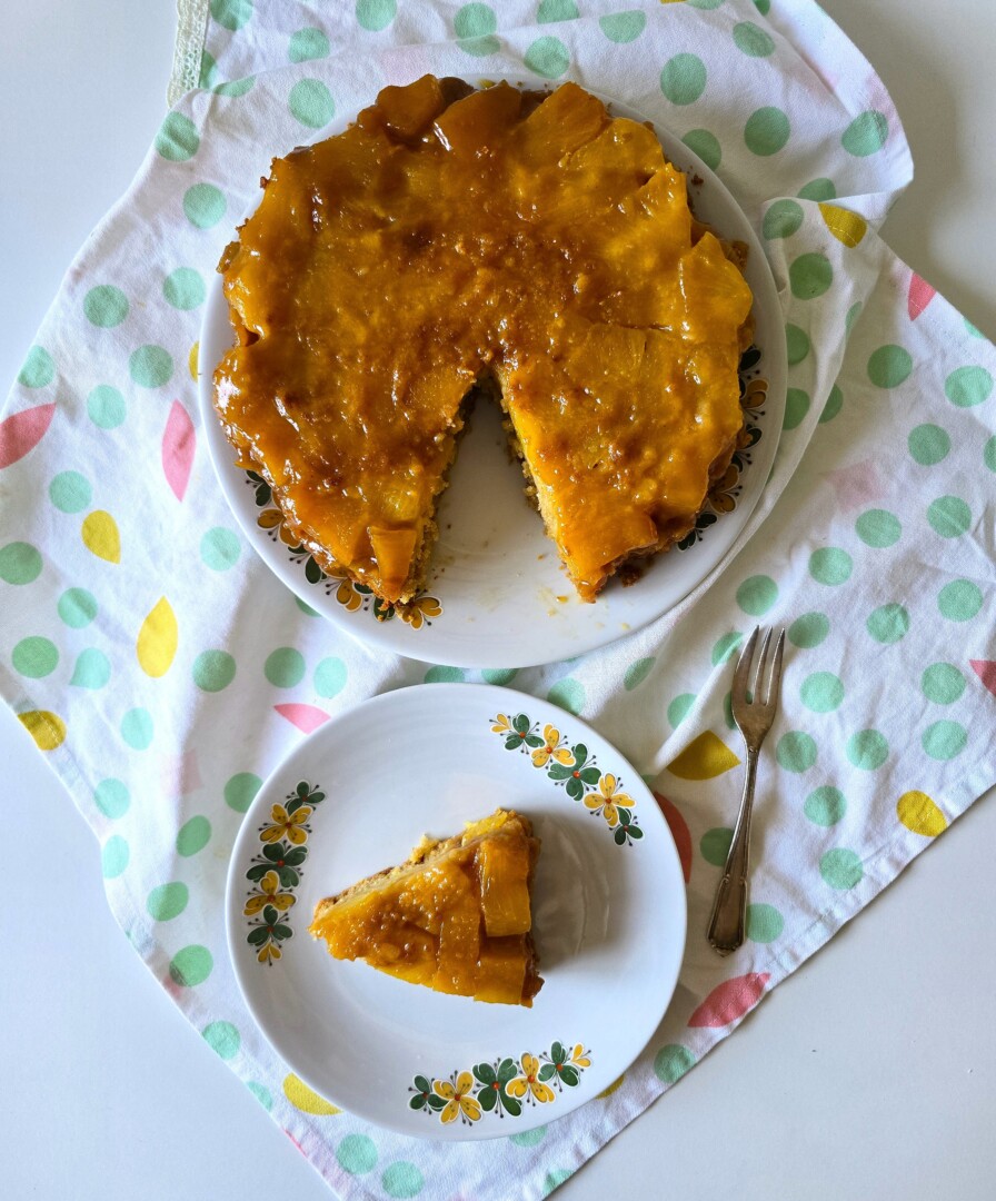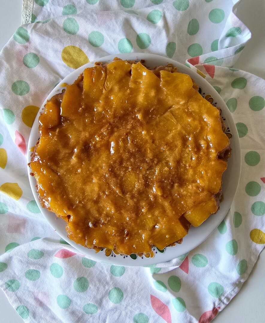 Questa torta è un mio ricordo d’infanzia, molto famoso negli anni ’70, conosciuto e amato da tutti. Ho poi scoperto che è una torta alle tradizioni taiwanesi e americane che poi si è diffusa in tutto il mondo. La tradizione taiwanese deriva dal fatto che l’ananas durante il periodo coloniale giapponese 1895-1945 era alla base dell’economia di Taiwan che lo esportava in tutto il mondo. Storicamente questo dolce era un piatto preparato nei giorni di festa e servito durante le cerimonie solenni, poi è diventato super diffuso nel XX secolo con la globalizzazione. L’origine della torta in America risale agli anni ’20 quando la frutta in lattina era diventata di moda. Il successo è dovuto da un concorso per preparare una torta all’ananas del 1925 ideato dalla DOLE che ai tempi si chiamava Dole Pineapple Company. Da quel momento iniziò il successo della Pineapple upside-down cake. Questa torta è famosa anche in Portogallo e in Brasile con il nome di Bolo de ananás.