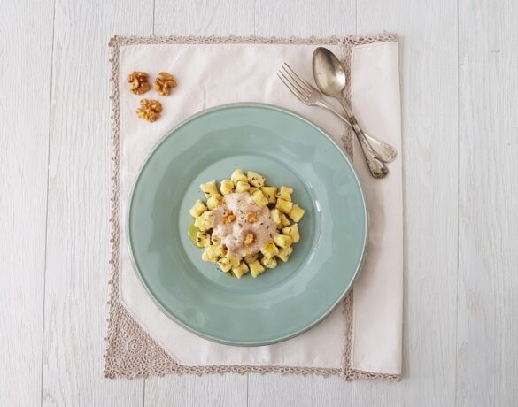 Gnocchi con farina di riso e salsa di noci, senza glutine